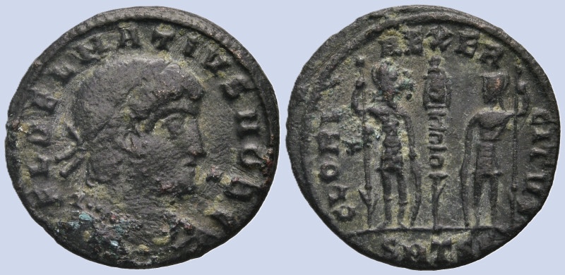 He was chosen by Constantine to become ruler of the part of Mesopotamia that Constantine expected to conquer in his (aborted by Constantine's death in 337) campaign prepared in 335. Note the title "REGI"-- the only use of "King" on a Roman imperial coin. The river god on the reverse refers to the Euphrates which would have been the route of invasion. Hanniballianus was killed in the purge by Constantius II and his brothers in 337 in the "Summer of Blood" after Constantine's death.