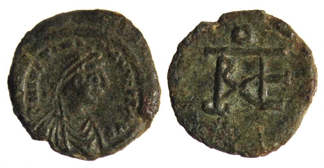 2024, August 7: Byzantine nummia with monograms. A pentanummion of Maurice from Carthage.