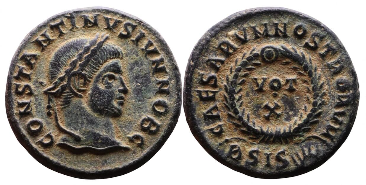 VOF303. VOT / X in wreath, CAESARVM NOSTRORVM around (a type for Crispus and Constantine II).