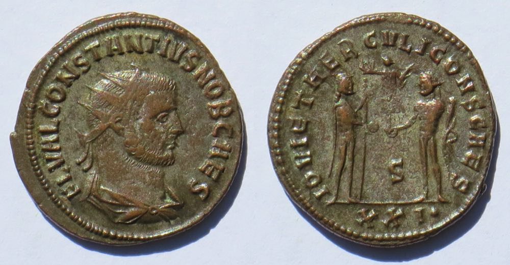 The reform (which discontinued this denomination) was shortly after Constantius I and Galerius were created Caesars in September, 293, so they minted relatively few antoniani.