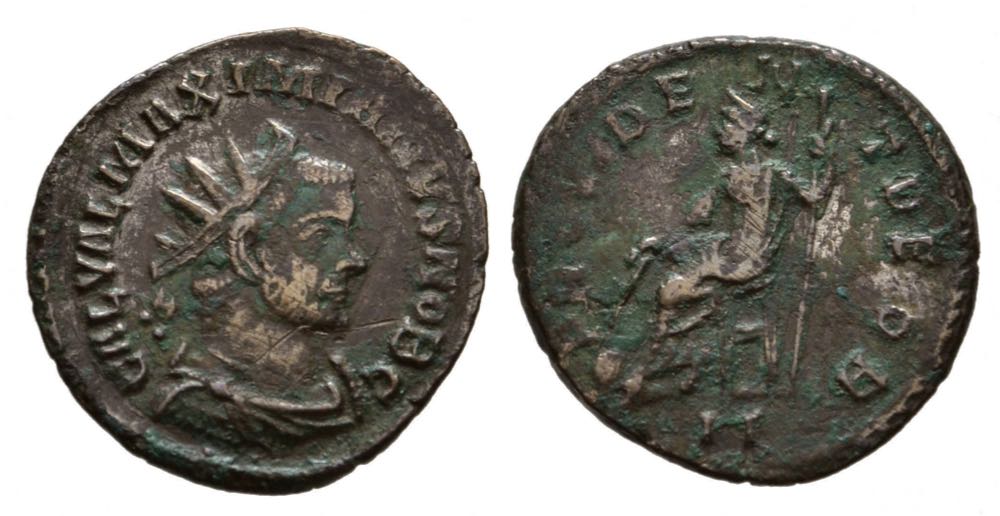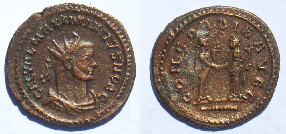 All of these coins were struck before the coin reform of c. 294 which introduced the "follis" denomination and discontinued minting of this denomination. The reform was shortly after Constantius I and Galerius were created Caesars in May, 293, so the Caesars minted relatively few coins of this denomination. For coins of other denominations, see "Introduction to Roman coins of the First Tetrarchy." References to RIC are to volume V.II which has coins of the First Tetrarchy before the reform of c. 294.