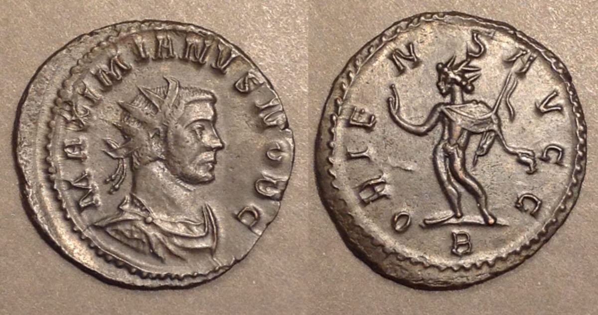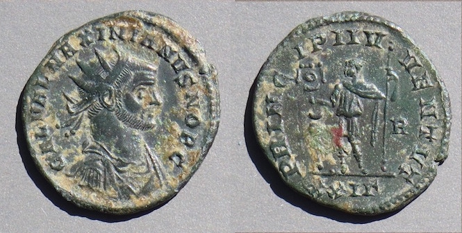 The "aurelianus" (aka "antoninianus") denomination, struck AD 293-294.